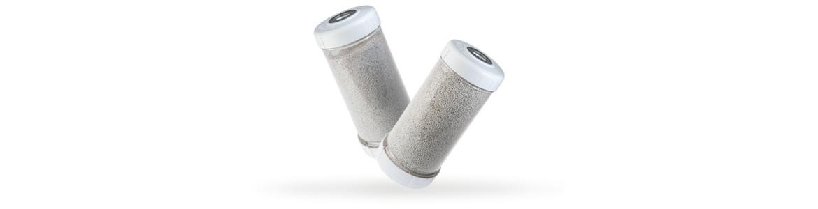 Cartuchos filtrantes con calcita: dependiendo del cartucho elegido, la calcita se puede utilizar para mineralizar el agua después de un tratamiento de ósmosis inversa o para neutralizar la condensación ácida producida por las calderas de condensación.